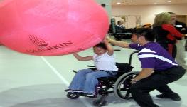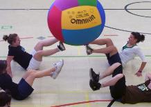 with the help of teammates, play giant volleyball or other more